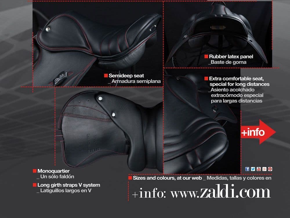 Home / Saddles / Endurance saddles / Sabbatan Endurance Saddle Sabbatan Endurance Saddle €1,744.00 €1,441.32 (ex. VAT) Multipurpose saddle can be used for endurance, jumping, raid, eventing, hacking out. Semi deep seat. Single flap design. Width: 28 cms 30 cms 32 cms 34 cms Seat size: 16" 16.5" 17" 17.5" 18" Colour: Black Brown Tostado (dark tan) Havana Bi-colour or contrast trim - see box below Details re bi-colour or contrast trim/stitching: Anatomic panels: No Yes (+€50.00) Dropped panels: No Yes (+€48.00) Add to your Wish List Information A new Endurance and multipurpose saddle from Zaldi. Designed as an endurance saddle and built for the comfort of rider and horse when many hours are spent in the saddle but also made to a versatile design that could be used for Raid, Trec, general purpose or even jumping . This saddle has an ultra comfort latex filled seat for the rider, combined with a good size knee roll to give extra support and good broad latex filled panels to prevent stress and fatigue for the horse. The saddle is of monoquartier/single flap design and made from quality european leather. The weight is approximately 5.4kgs. Fitted with long girth straps in V formation. Length of panels 45cms. Length of flap from stirrup bar 37cms. Free delivery in UK and most of Europe, discounted delivery to USA and Australasia Specifications Product Code: 00167 Weight: 115kg
